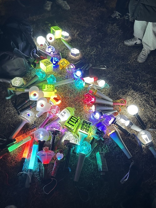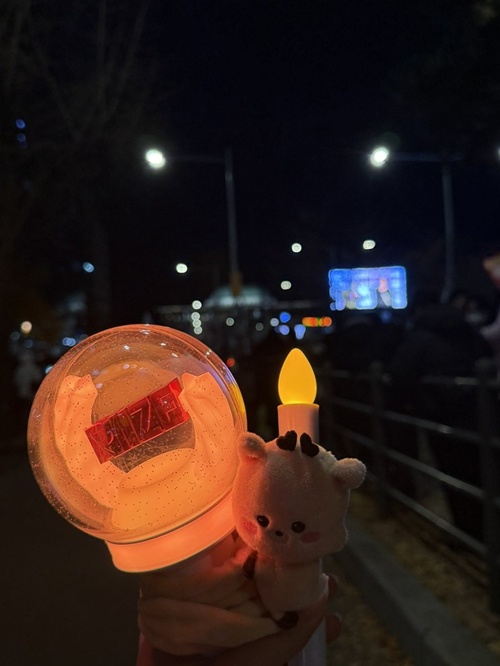 「“推し(最も好きなグループやメンバー)“と私たちを守るために応援棒(ペンライト)を持ってきました」。ロウソクよりも明るく輝くK-POPアイドルグループの応援棒。その存在感は夜が深まるほどに際立っていた。