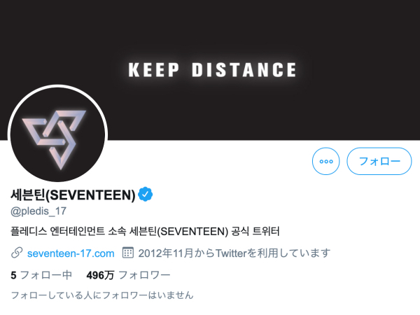 SEVENTEENは、ヘッダーのフレーズを「KEEP DISTANCE」に変え、距離を維持するようにと直接メッセージを伝えている。黒の背景と白い文字で、誰もが注目するようにデザインされた。