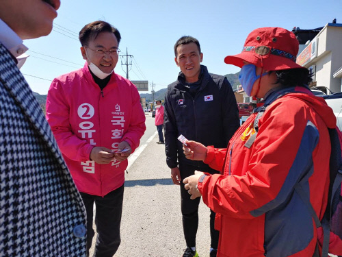 俳優ユ・オソンは、兄の未来統合党ユ・サンボム候補のために奮闘している。ユ・オソンは公式選挙運動の開始後、ユ・サンボム候補と一緒に地域住民と会い、積極的に支援射撃をしている。