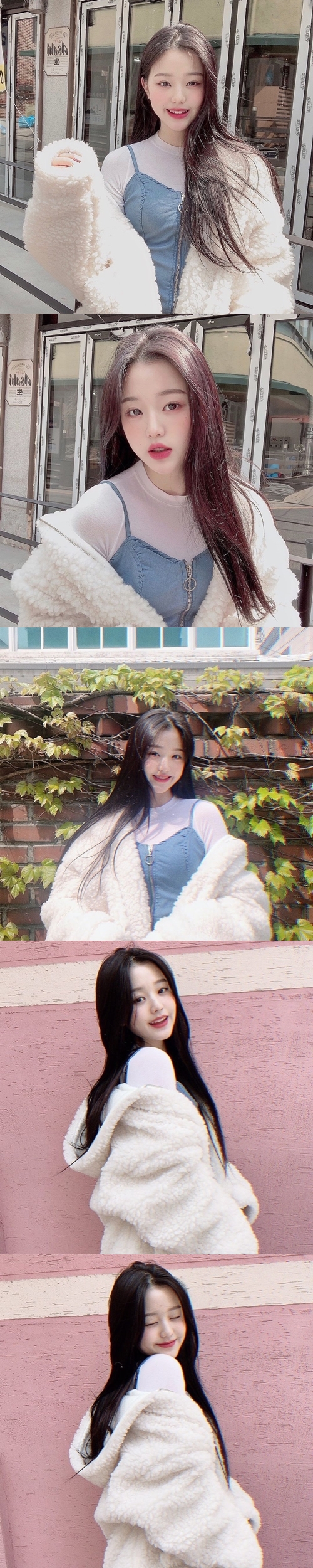 チャン・ウォニョンは当該の写真を通じて、白のクルーネックトップスにデニム素材のビスチェを合わせたコーディネートを披露。春らしく爽やかな印象を与えながらも、ボリューム感のあるアウターで可愛らしさを強調することも忘れなかった。