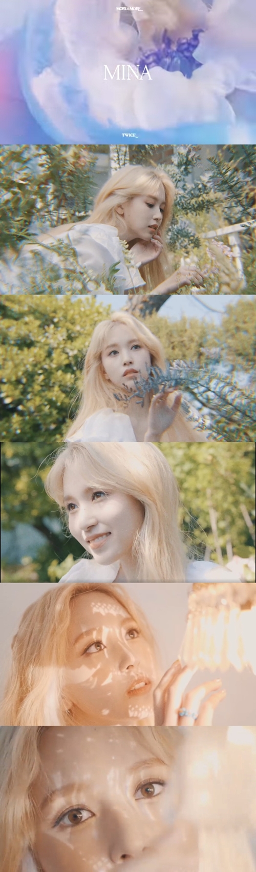所属事務所JYPエンターテインメントの公式ユーチューブチャンネルには最近、来る6月にリリースされるTWICEの新アルバム『MORE & MORE』のメンバー別コンセプト映像が順次公開されている。5月20日0時には、ミナの可憐な魅力が新譜への期待感を一層高めた。