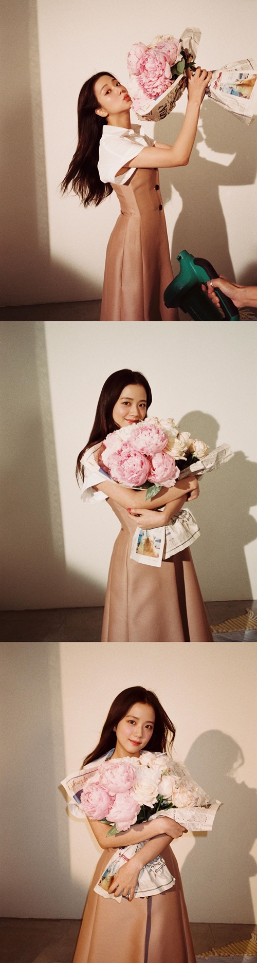 写真の中のジスは、柔らかい色のブーケを抱えて微笑んでいる。透明感のある素肌と、艶やかロングヘアが魅力的だ。