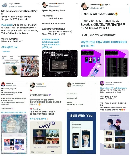 ファンアカウント「Helianthusヒーリーアンサス」は、6月13日に放送される韓国の音楽番組『音楽中心』の放送開始前と終了後、JUNG KOOKの広告を送出すると伝えた。それと同時に6月12~25日に城東(ソンドン)、江南(カンナム)、麻浦(マポ)、龍山(ヨンサン)、銅雀(トンジャン)区などにあるコンビニGS25の127店舗のGS TVで、JUNG KOOKの広告映像を送信すると発表した。