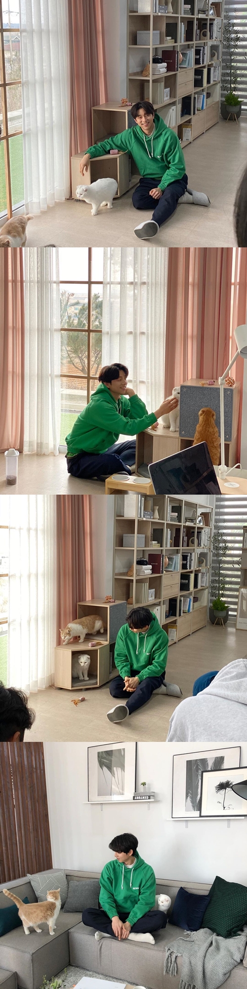 写真の中のコン・ユは、2匹の猫と戯れながらリラックスした姿を見せている。優しげな笑顔はもちろん、猫の動向を気にするように首を傾ける仕草もまた穏やかな人柄を感じさせる。