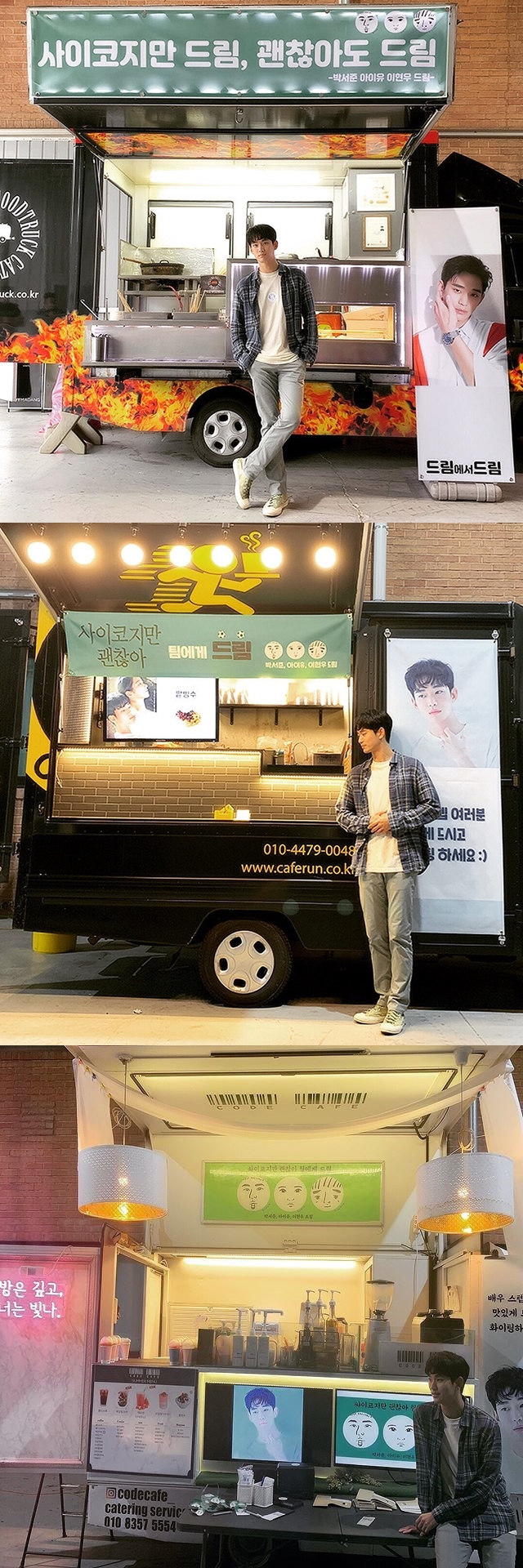 キッチンカーには「サイコだけどドリーム、大丈夫でもドリーム(ドリームは韓国語の「差し上げる」と同音)」という、ドラマ『サイコだけど大丈夫』と映画『ドリーム』にちなんだユーモアが込められたメッセージも添えられている。