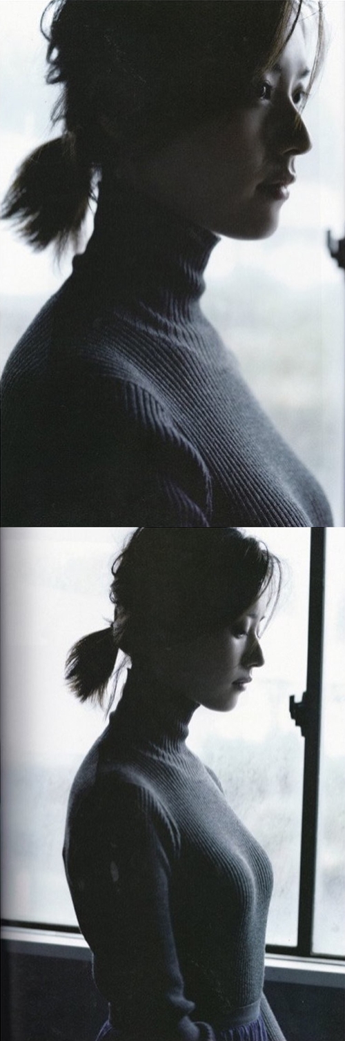 写真の中のハン・ヒョジュは、薄手のハイネックニットを着用し、肩にかかる髪を一つにまとめている。芸術品のように完璧な横顔のラインと、曲線美を感じさせるシルエットが印象的だ。
