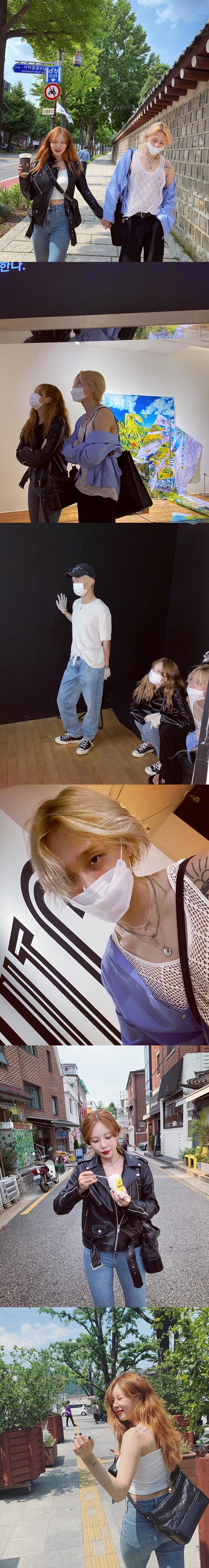 写真の中には、ヒョナとイドンが手をつないで景福宮(キョンボックン)エリアを歩いたり、展覧会を訪れたりするなど、デートを楽しむ様子が写っている。