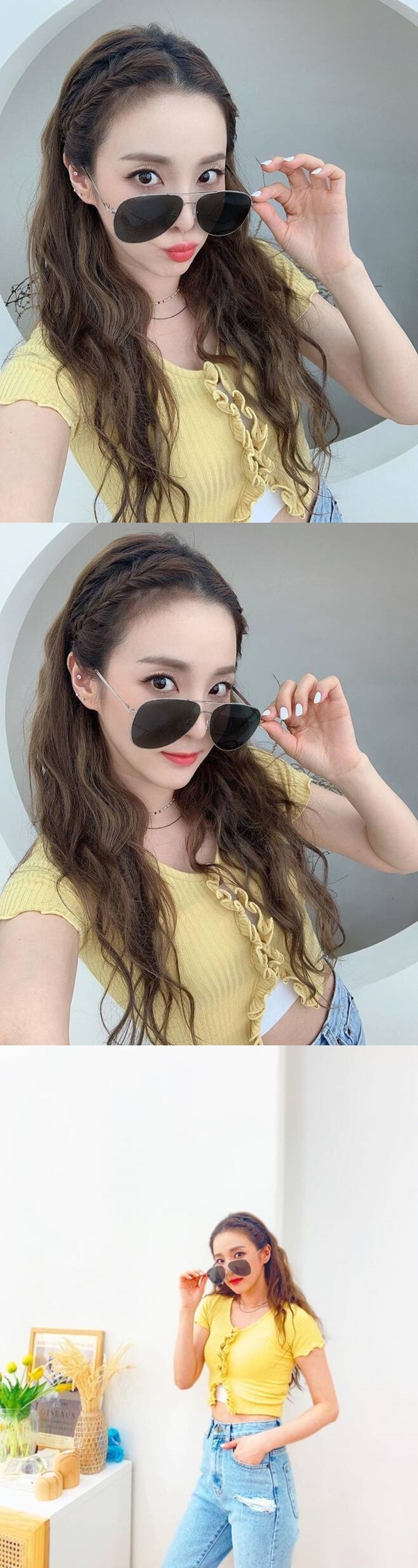 公開された写真には黄色のクロップドTに薄色デニムを合わせ、ポーズを決めるパク・サンダラの姿が写っている。