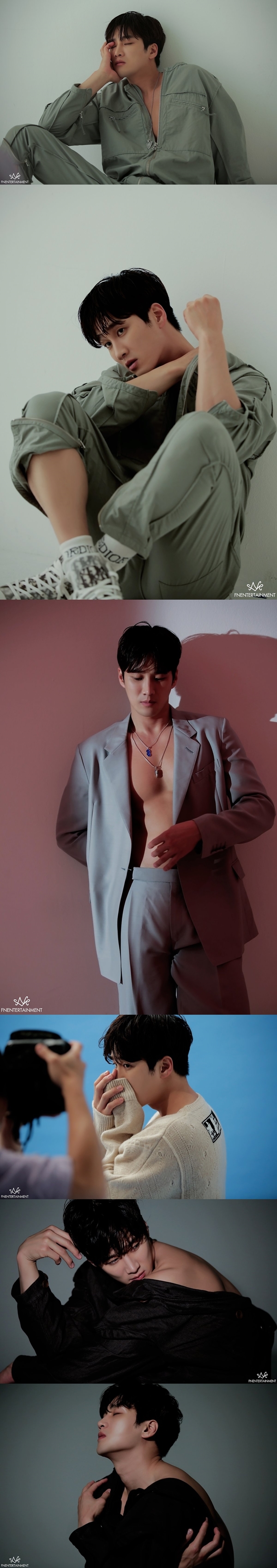 男の色気を漂わせた撮影カットが反響を呼んでいるなか、7月15日には所属事務所FNエンターテインメントが撮影現場のメイキング写真を公開した。