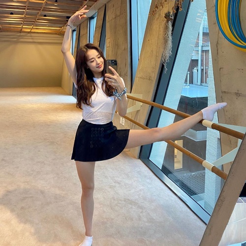 写真を見ると、ミニスカート姿のソン・ヨンジェが鏡に向かってポーズを取っている。現役時代と変わらぬ柔軟性はさることながら、スラリと伸びた足も見る者を惹きつける。