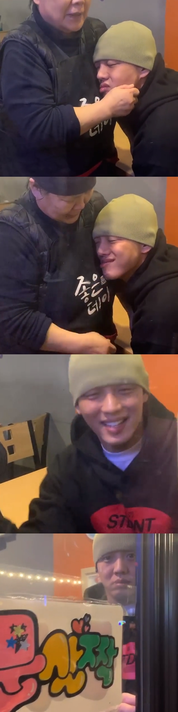 公開された動画には、居酒屋で従業員のおばさんの胸に抱かれている泥酔状態のユ・アインが映っている。