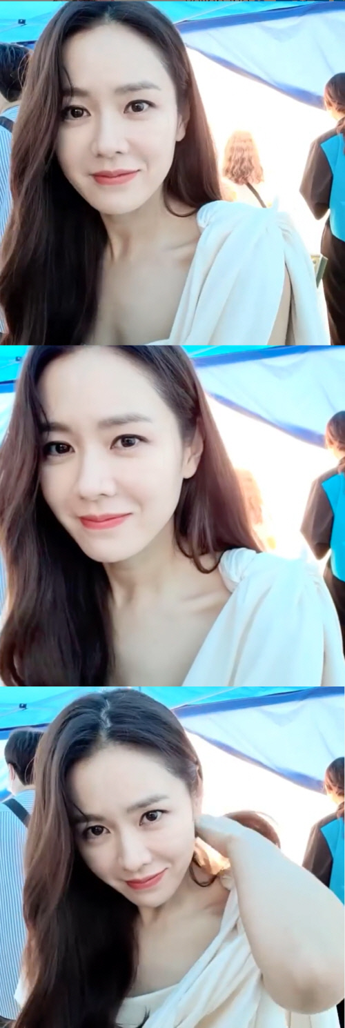 公開された映像でソン・イェジンは、カメラに向かって清純な美貌を披露しながら髪をまとめている。スタッフと推定される人々は皆、後ろを振り向いて外を眺めている。