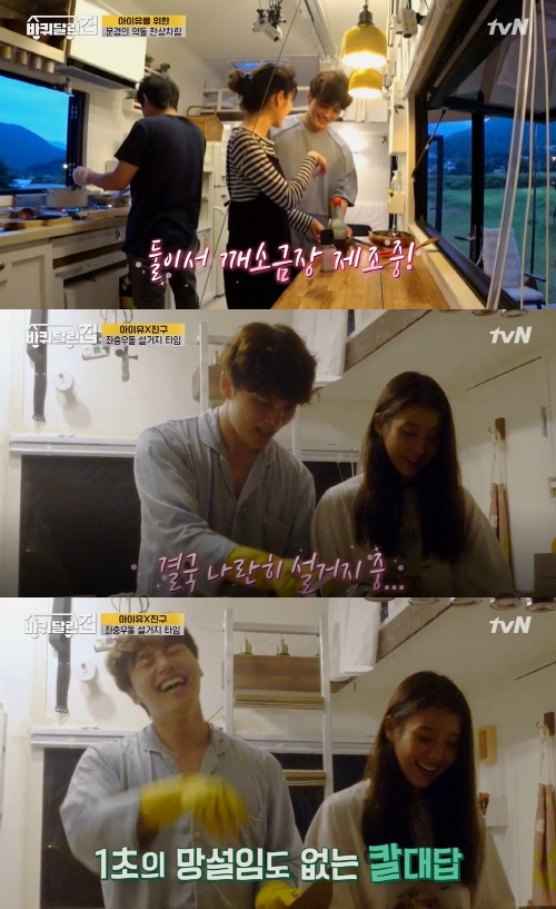 食事が終わってからIUが皿洗いを買って出ると、ヨ・ジングもIUの隣に立つ。「君はちょっと休んで」というIUの言葉にもかかわらず一緒に皿洗いをし、まるで新婚夫婦のようなムードを演出した。