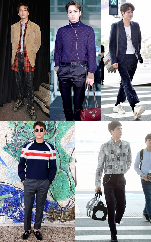 ボーイズグループEXOのカイは、ダンスで鍛えられた細身ながらもしっかりとしたボディーラインを武器に、グッチの衣装をスタイリッシュに着こなした。