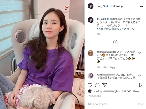 スンヨンは11日、インスタグラムに「10周年おめでとう! ありがとう! やっぱりはやい すぐ会えるように…ありがとう!!!」と投稿。「#写真が昔の物なのですみません」という愛嬌たっぷりのハッシュタグと共に、自身の写真を掲載した。