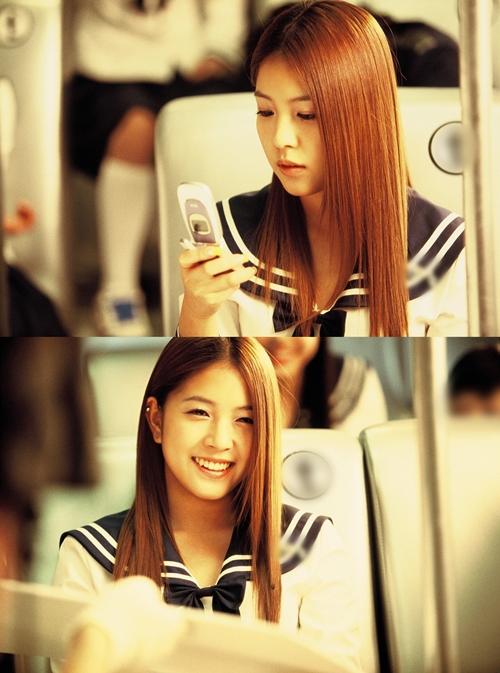 写真の中のBoAはセーラー服に身を包み、いわゆる“ガラケー”の画面をじっと見つめている。時の流れを感じさせると共に、当時から光る美しさが目を引く。