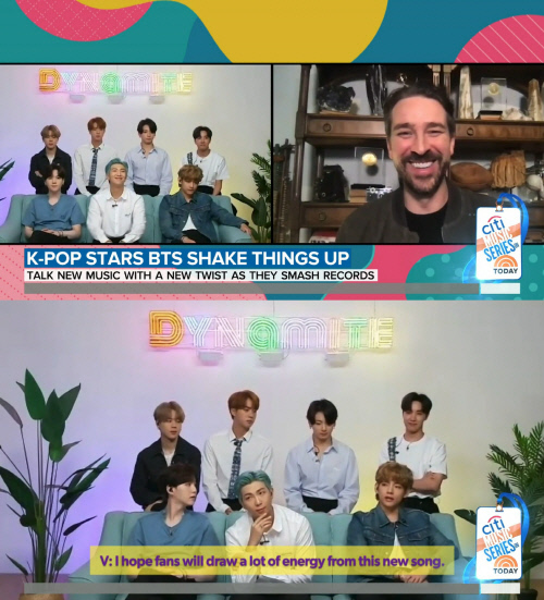 BTSはこの日、ビデオ通話の方法で司会者ジョー・フライヤー(Joe Fryer)の質問に答えた。8月21日にリリースされたデジタルシングル『Dynamite』の紹介や新たな挑戦について、そしてファンへのメッセージを述べている。