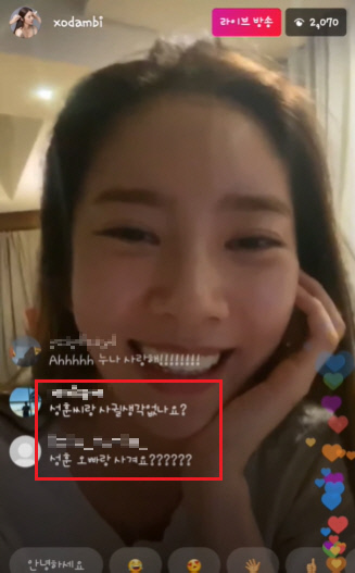 ライブ配信中、ネット民らは「ソンフンさんと付き合っていますか?」という質問を掲載した。