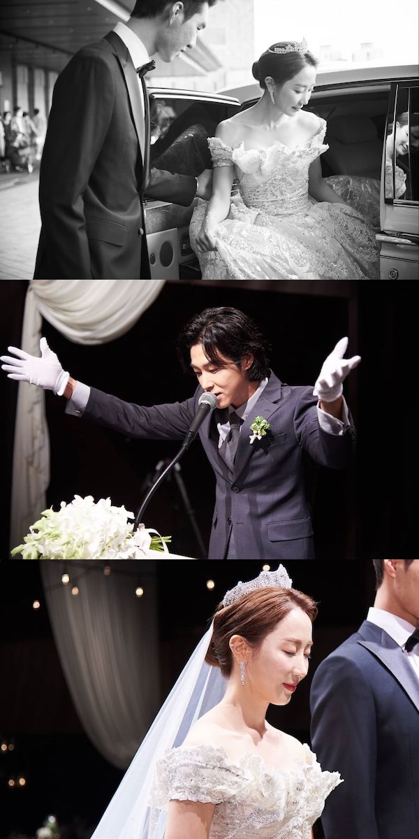 公開された写真には、美しい新郎新婦の幸せそうなツーショットはもちろん、結婚式で司会を務めた東方神起ユンホや、ウェディングソングを歌った同僚たちの姿が収められている。