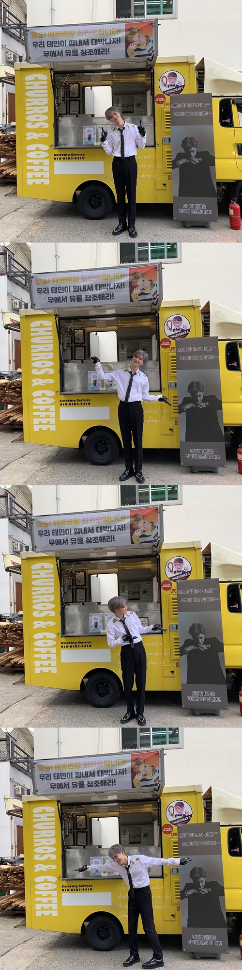 テミンに贈られたキッチンカーには、「必勝! 海兵長チェ・ミンホです! われらのテミン、頑張って大ヒットしよう! 無から有を創造するんだ!」と綴られている。