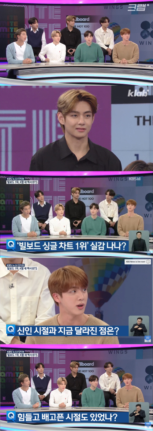 米ビルボードのシングルチャート「HOT100」で韓国アーティスト初の1位達成という嬉しいニュースの当事者として招かれたBTSは、メインキャスターのイ・ソジョンとインタビューを行った。