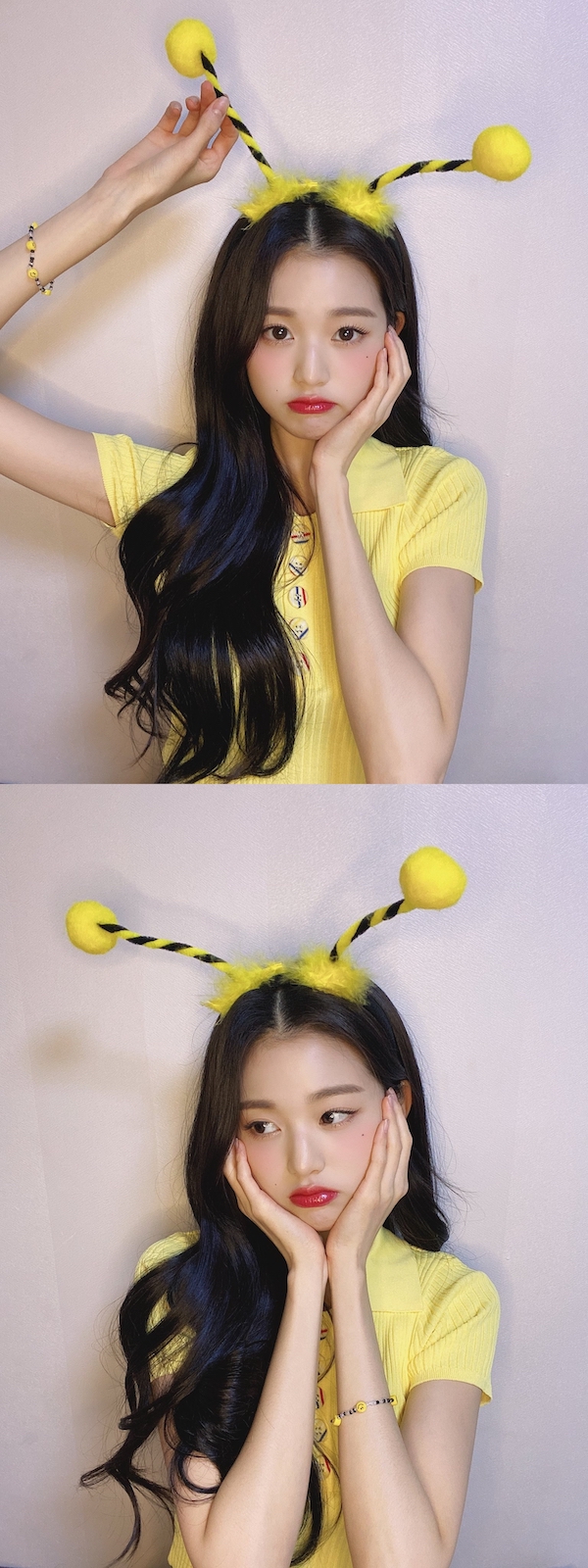 チャン・ウォニョンは9月29日、IZ*ONEの公式ツイッターに「ミツバチが来ました」という文章を添えて2枚の写真を投稿。