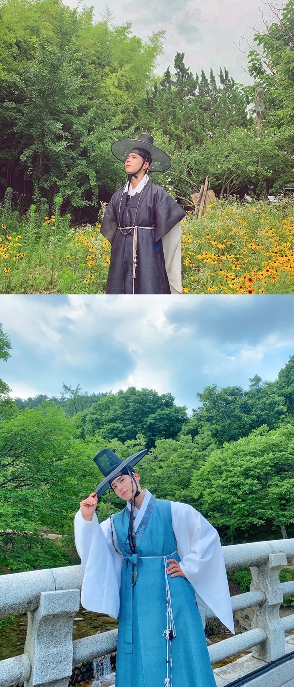 写真には、ドラマ『青春の記録』の撮影で韓服を着たパク・ボゴムが写っている。