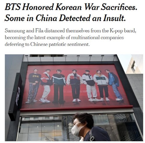 『ニューヨーク・タイムズ』は10月12日、「BTSは朝鮮戦争の犠牲を称えたが、一部の中国人たちが(BTSの発言に)侮辱を検出した」というタイトルの記事で、中国のネットユーザーたちの反応を扱った。