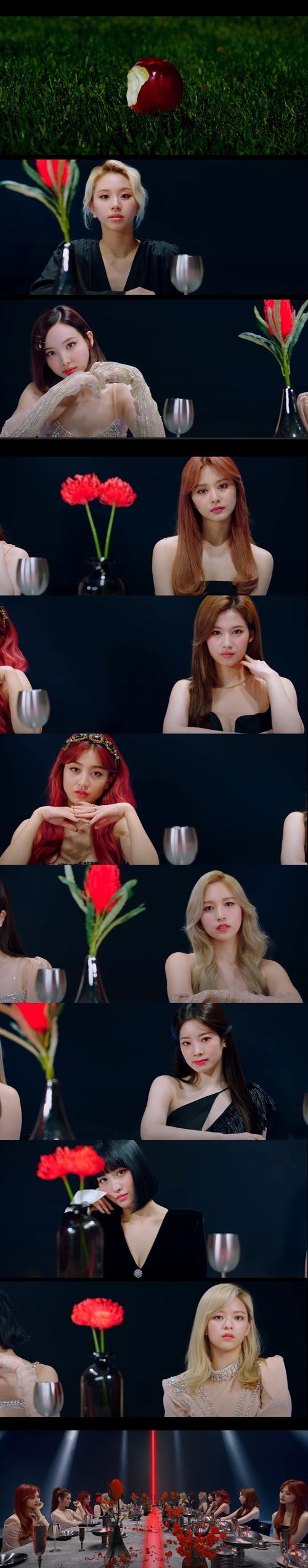 9人のメンバーは赤い線が引かれたテーブルに向かい合って座っており、妙な緊張感が漂っている。メンバーのヌードトーンの衣装とブラックドレスは、善と悪という相反する概念を視覚的に表現した。