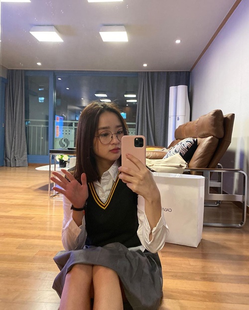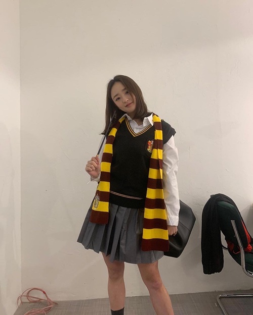 写真を見ると、現役女子高生さながらに制服を着こなしたソン・ヨンジェが、キュートなポーズを披露している。