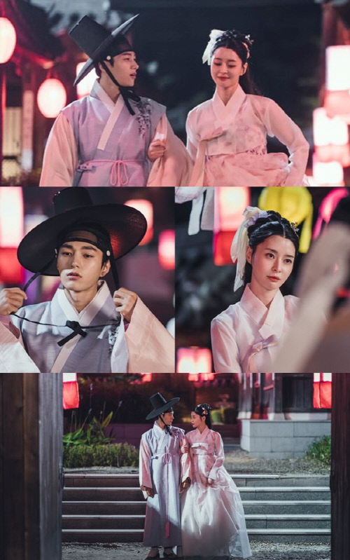 公開された写真の中には、カッ(朝鮮時代の帽子の一種)を傾けてかぶったキム・ミョンスと、美しい遊女に変身したクォン・ナラの姿が写る。笑みを浮かべながら腕を組むクォン・ナラと、そんな彼女から目を離せずにいるキム・ミョンスが、ほのかな照明と合わさって完璧なビジュアルを作り出す。優しく目を合わせる2人が、不思議なときめきをもたらした。