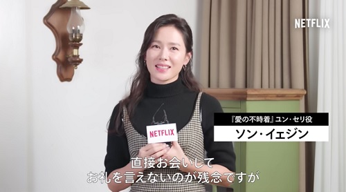 11月11日、Netflix Japanの公式YouTubeチャンネルは「『愛の不時着』のヒョンビン&ソン・イェジン、『梨泰院クラス』のパク・ソジュン、『サイコだけど大丈夫』のキム・スヒョン&ソ・イェジによる日本のファンへ向けたメッセージが到着」とし、彼らの出演する特別映像を公開した。