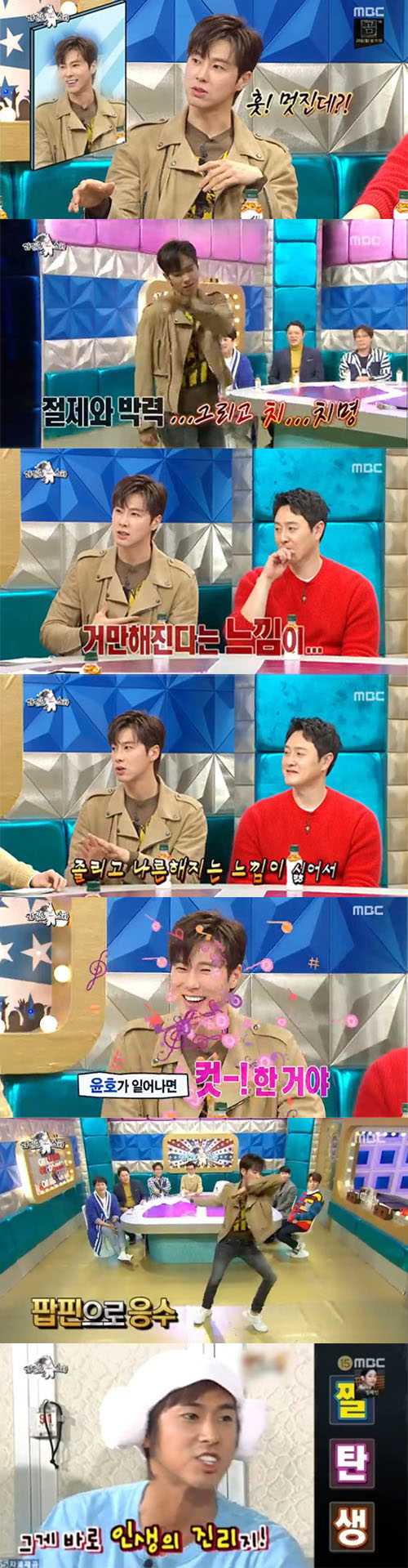 一緒に出演した歌手ファン・チヨルがダンスを披露すると、それを見たユンホも自ら編集してきたという音楽を流してダンスメドレーを披露。