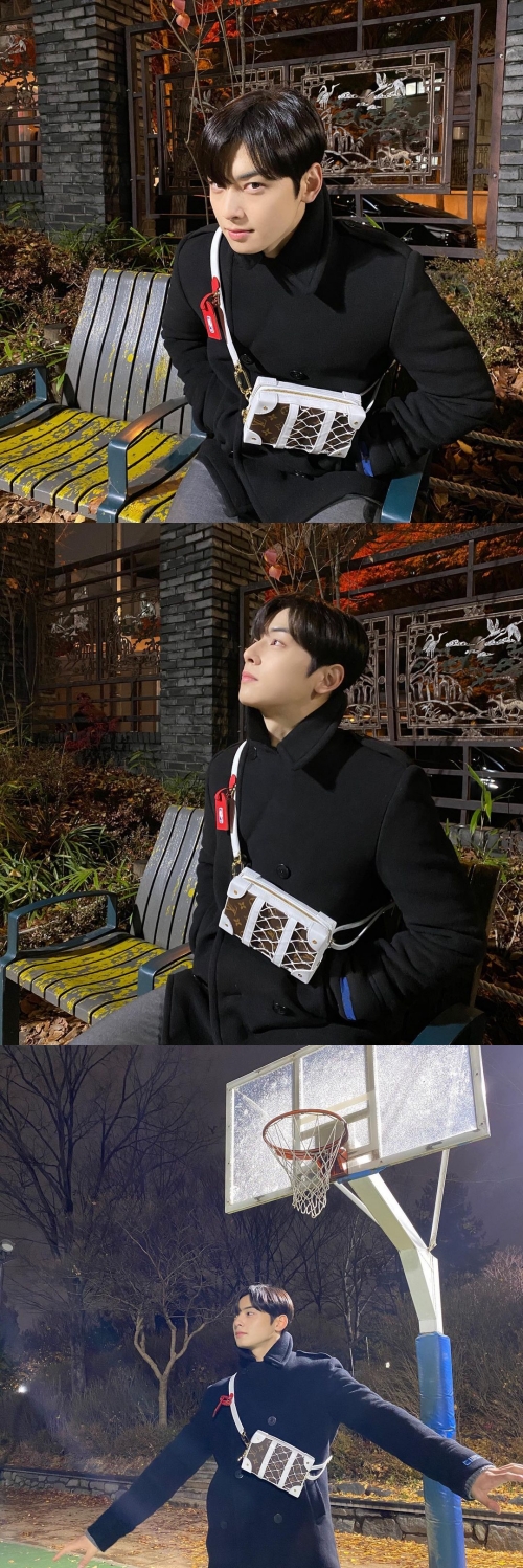 写真の中のチャ・ウヌは、黒いコートにルイ・ヴィトンのカバンを合わせ、“彼氏ルック”のお手本を披露している。“顔天才”の愛称にふさわしいイケメンぶりはもちろん、バスケットゴールの前で高い身長を際立たせ、全身から輝きを放った。