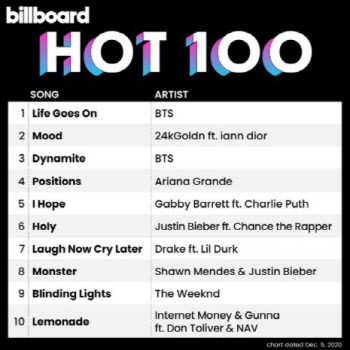 ビルボードによると、『Life Goes On』は非英語圏の音楽として、初めて公開と同時に「HOT100」で1位を達成した曲だ。これまで非英語圏の曲で1位を記録したのは、2017年のスペイン語曲『Despacito』、1996年の『Macarena』と1987年の『La Bamba』)などだ。