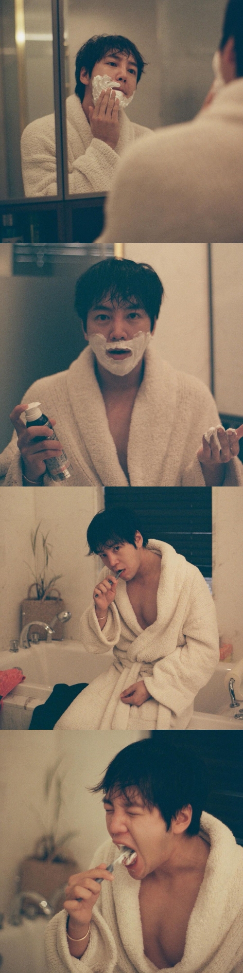 写真には、シャワーガウンを着用したチャン・グンソクが写っている。
