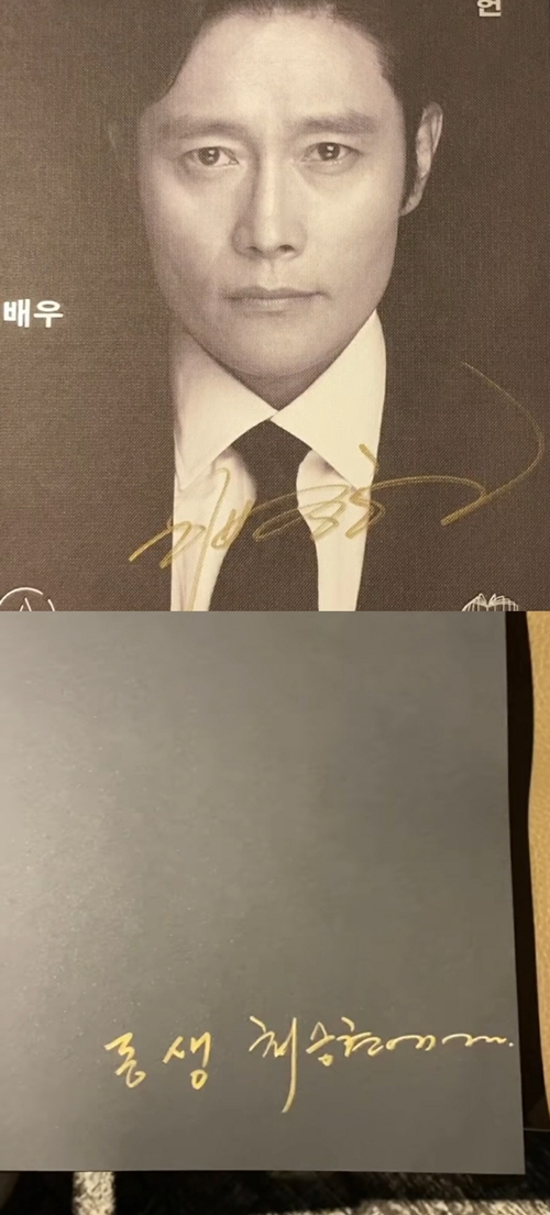 当該の映像は、イ・ビョンホンの俳優としての軌跡が綴られた300ページにわたる書籍『俳優イ・ビョンホン』(原題)を映したもの。表紙にはイ・ビョンホンのサイン、見開きページには「弟チェ・スンヒョンへ」という直筆メッセージが書かれている。