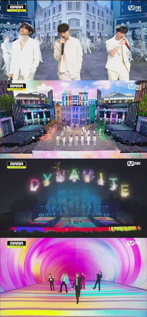 コロナ禍だけに、BTSのメンバーたちは喜びながらも慎む姿を見せた。深い印象を残した受賞のスピーチもそうだが、彼らが準備してきたステージも圧倒的だった。BTSはこの日、『ON』『Dynamite』『Life Goes On』の3曲を披露している。