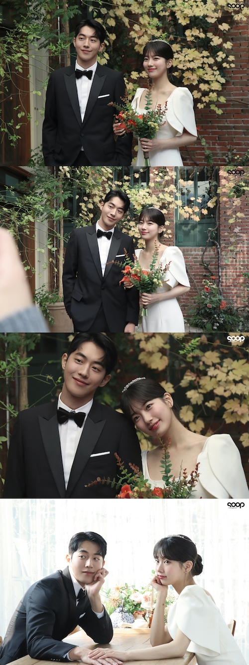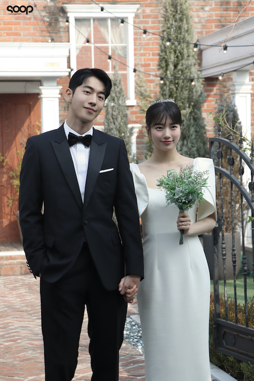 ウェディングドレスに身を包んで清楚なビジュアルを放つペ・スジと、黒のタキシードを着てイケメンぶりを発揮するナム・ジュヒョクのツーショットが、ファンを喜ばせた。