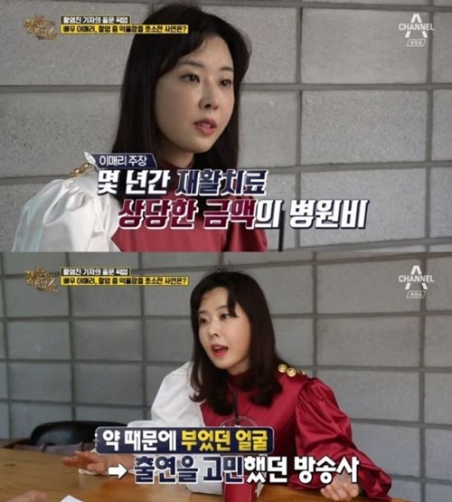 2011年にSBS週末ドラマ『新妓生伝』出演後、健康悪化などを理由にタレント活動を中断したイ・メリは、昨年6月にチャンネルAの『うわさで聞いたでショー』に出演し、その由を打ち明けた。