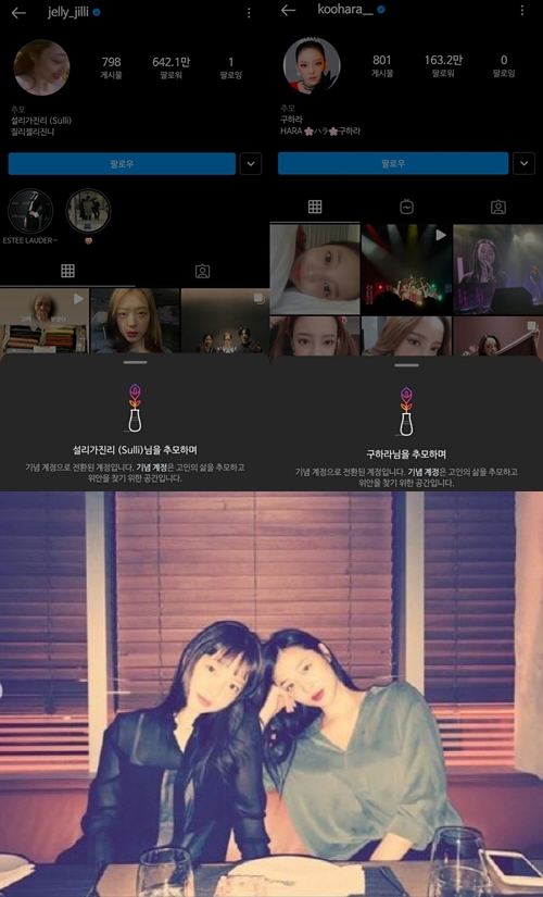 昨年この世を去ったf(x)出身のソルリさん、KARA出身のク・ハラさんのインスタグラムが、追悼アカウントとなった。