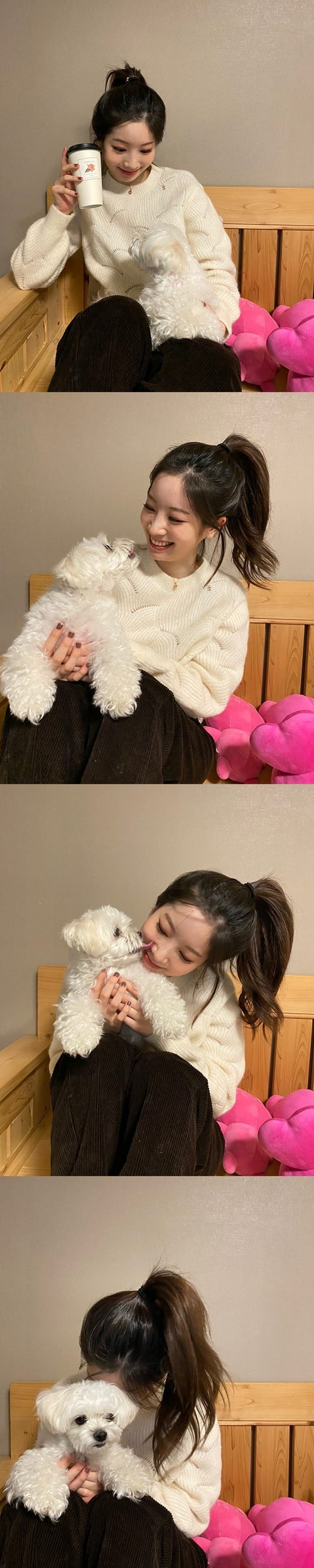 ダヒョンは12月14日、TWICEの公式インスタグラムに愛犬のアリちゃんと過ごす自身の写真を投稿。「さっきチャットしてたら、アリの写真が見たいというONCE(TWICEのファンネーム)がいらっしゃったので…(笑)」と綴り、ファンのリクエストに応えたことを明かした。