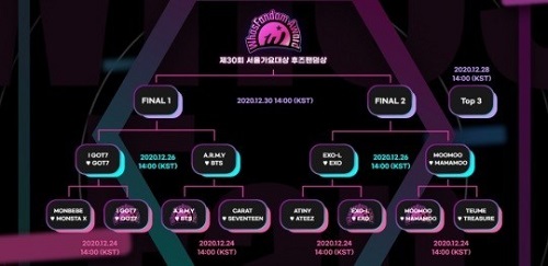 1対1の得票率対決である「Top 8」投票は、12月24日14時から進行された。MONSTA XとGOT7、BTS(防弾少年団)とSEVENTEEN、ATEEZとEXO、MAMAMOOとTREASUREが投票を進行した。