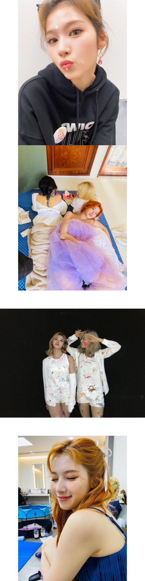 公開された写真にはサナが今まで活動をしながら撮られた姿や自撮り写真、控室で横になっている姿などが写っている。