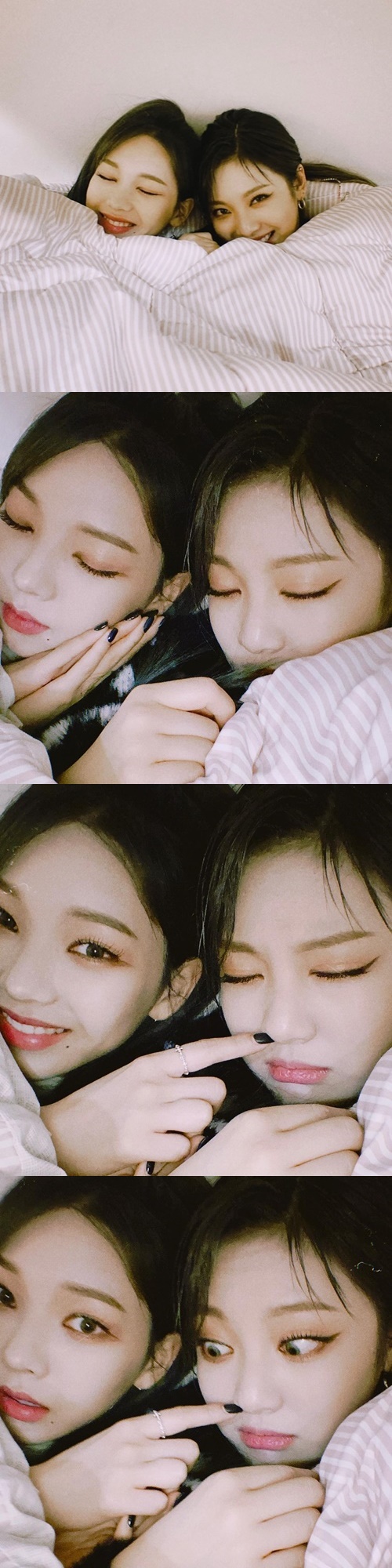 写真に写っている2人は1つの布団にくるまり、仲睦まじい姿を見せている。