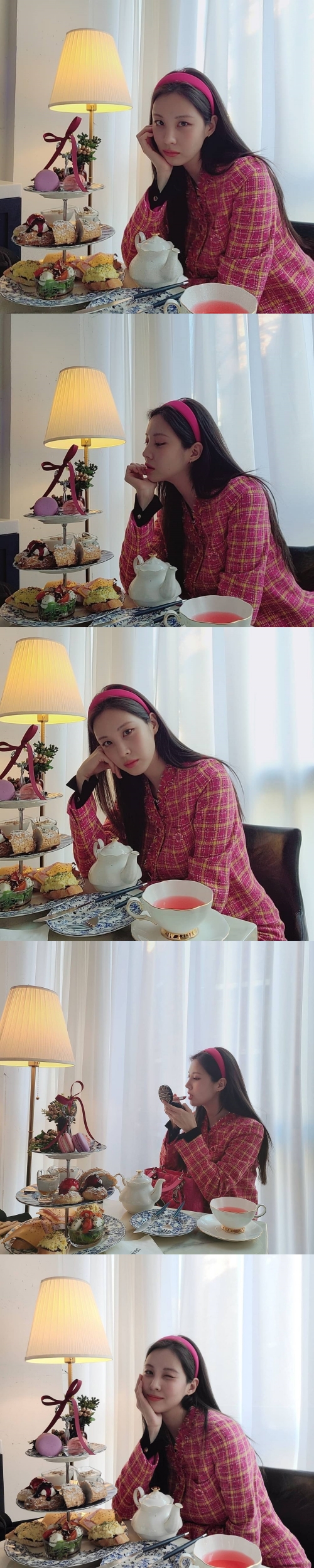 写真には、ピンクのヘアバンドとセットアップを着用したソヒョンの姿が写っている。テーブルの上を彩るパンやスイーツとともに写るソヒョンは、まるで海外の映画に出てくるお姫様のような雰囲気だ。