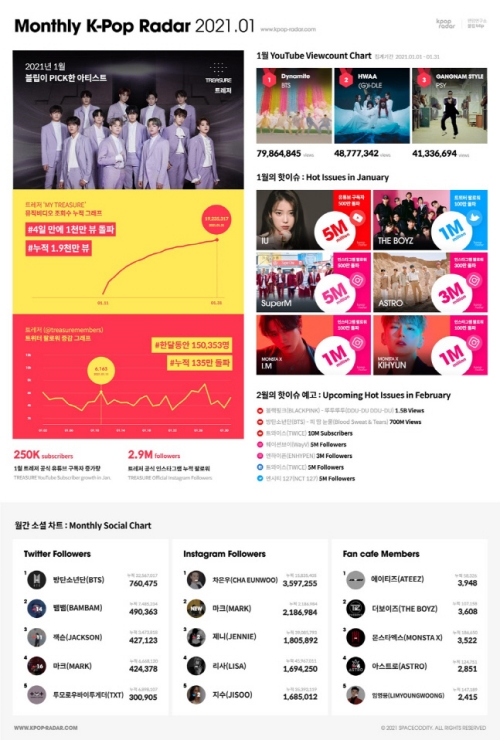音楽メディア『週間K-POPレーダー』側は2月5日、「2020年1年間ツイッターでの言及量が最も多い新人K-POPアーティスト」となり、「今月のアーティスト」にTREASUREを選んだ理由を明かした。