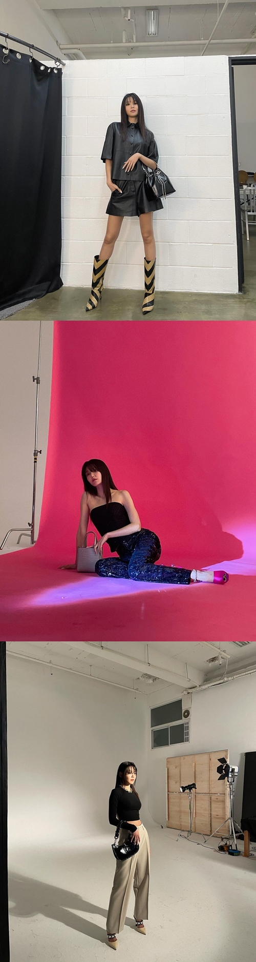 写真の中のスヨンは、デザイナーズシューズブランドJIMMY CHOO(ジミーチュウ)のアイテムで華やかなコーディネートを完成させている。驚異的な小顔と、体の半分以上が脚と言われても疑わないほどのスタイルが見る者を圧倒する。
