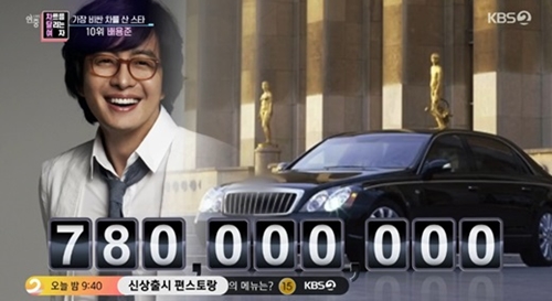 去る2月5日に韓国で放送された『芸能ライブ』では、「最も高価な車を購入したスター」TOP10のランキングが発表された。