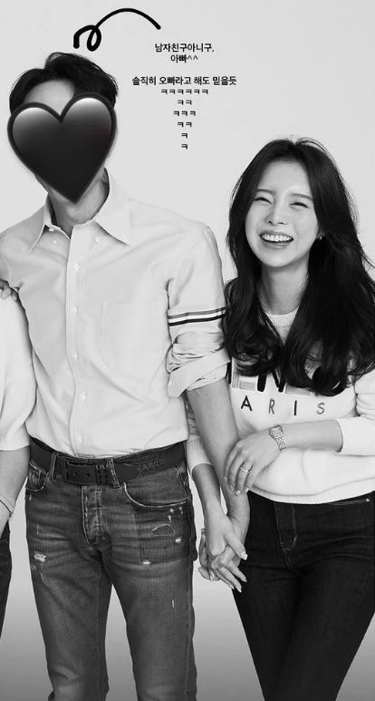 父親の顔は黒いハートの絵文字で隠されているが、そのスタイルやファッションはMEJIWOOのような娘や、J-HOPEのような息子がいるとは思えないほど若い雰囲気を醸し出している。